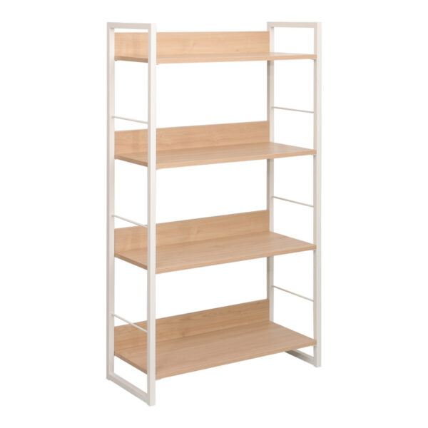 Βιβλιοθήκη Dorfie pakoworld σε φυσική απόχρωση με λευκό μέταλλο 70x30x124.5εκ. 225-000064