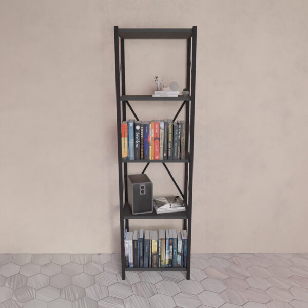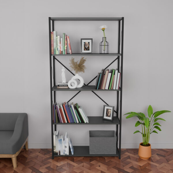 Βιβλιοθήκη Jackrey pakoworld ανθρακί μελαμίνης-μαύρο μέταλλο 63x30x114εκ. 321-000011