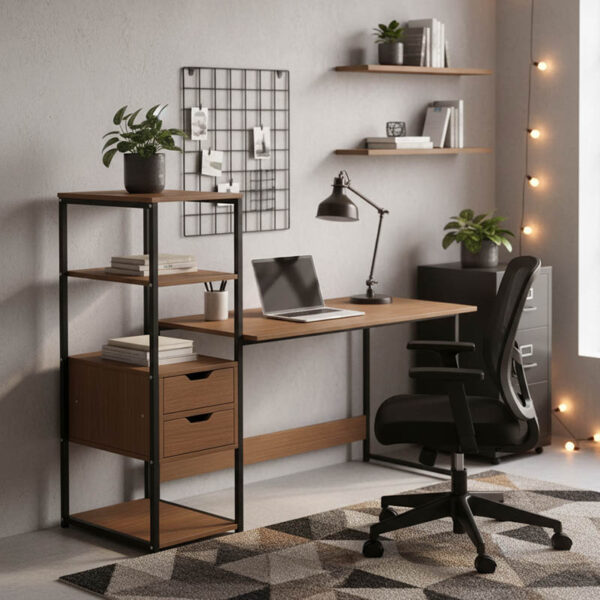 Γραφείο Zayn ΙΙ pakoworld με ραφιέρα-MDF καρυδί-μαύρο 107x40x110εκ. 072-000070