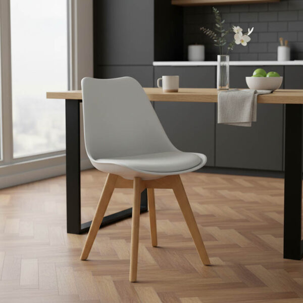 Καρέκλα Gaston pakoworld PP-PU λευκό-φυσικό πόδι 43x51x75εκ. 029-000048