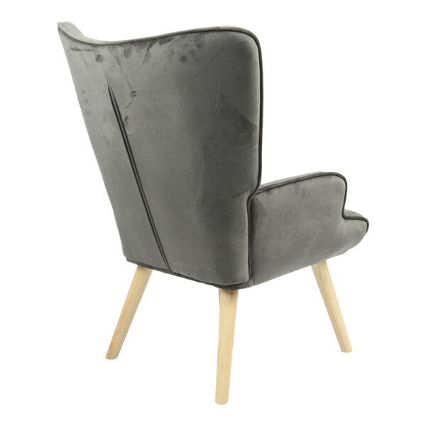 Πολυθρόνα με υποπόδιο Melisia pakoworld γκρι βελούδο και ξύλινο πόδι σε φυσική απόχρωση 59x67x94εκ. 255-000076