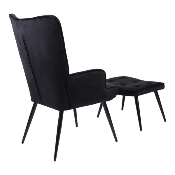 Πολυθρόνα με υποπόδιο Siella pakoworld μαύρο βελούδο και μαύρο μέταλλο πόδι 59x67x94εκ. 255-000079