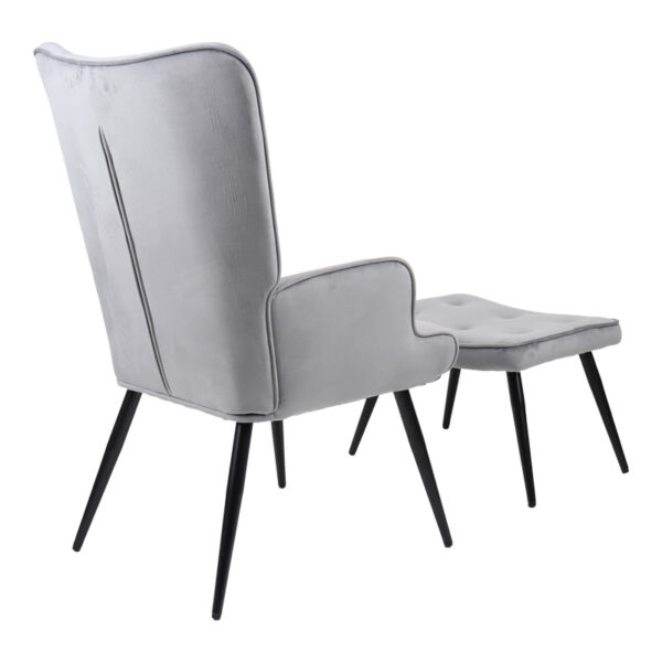 Πολυθρόνα με υποπόδιο Siella pakoworld γκρι βελούδο και μαύρο μέταλλο πόδι 59x67x94εκ. 255-000081