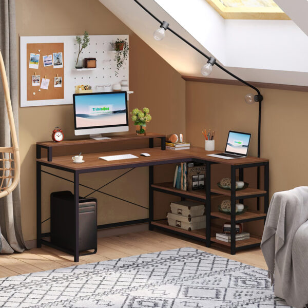Γραφείο γωνιακό αναστρέψιμο Tebul pakoworld MDF-metal σε καρυδί απόχρωση 130x60x88εκ. 072-000123