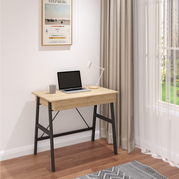 Γραφείο εργασίας Lione pakoworld με συρτάρια σε oak απόχρωση με πόδι μαύρο μέταλλο 90x50x75εκ. 375-000007