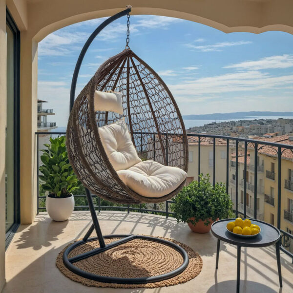 Κούνια Zafer pakoworld κρεμαστή μέταλλο-pp καφέ σφ.-μαξιλάρι μπεζ 106x103x200εκ. 135-000023