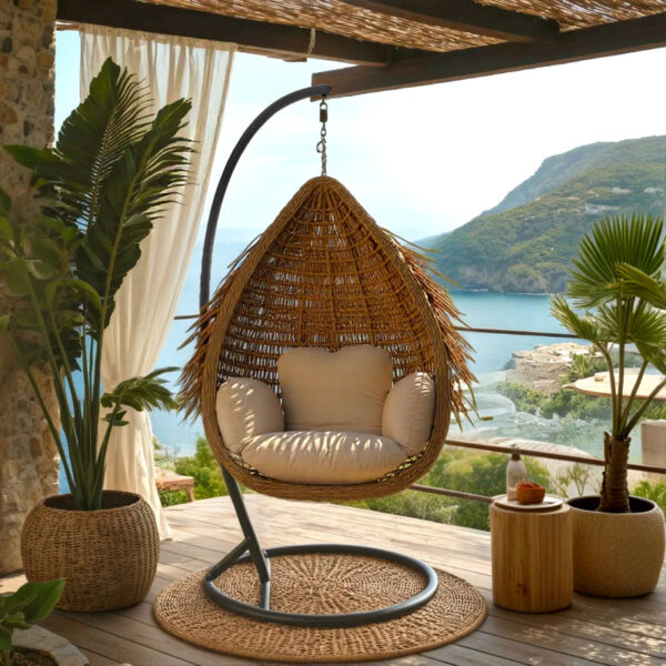 Κούνια φωλιά με βάση Soleil pakoworld μέταλλο μαύρο- pe rattan φυσικό με μαύρο μαξιλάρι 120x95x195εκ. 368-000009