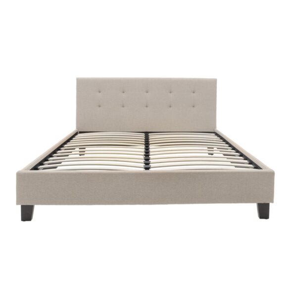 Κρεβάτι Mago pakoworld ύφασμα σε εκρού απόχρωση με φυσικό ξύλινο πόδι 140×200εκ. 006-000053