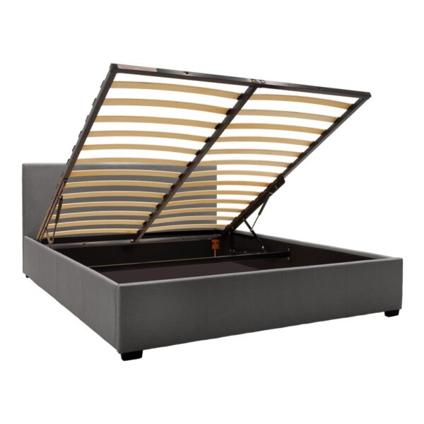Έχει μηχανισμό με αμορτισέρ που ανασηκώνει τον σομιέ προσφέροντας μεγάλο αποθηκευτικό χώρο η βάση του οποίου είναι ντυμένη με αποσπώμενο ύφασμα. - Το κεφαλάρι είναι διακοσμημένο με ενισχυμένες ραφές σε τετράγωνο μοτίβο, δίνοντας μία αίσθηση πολυτέλειας.